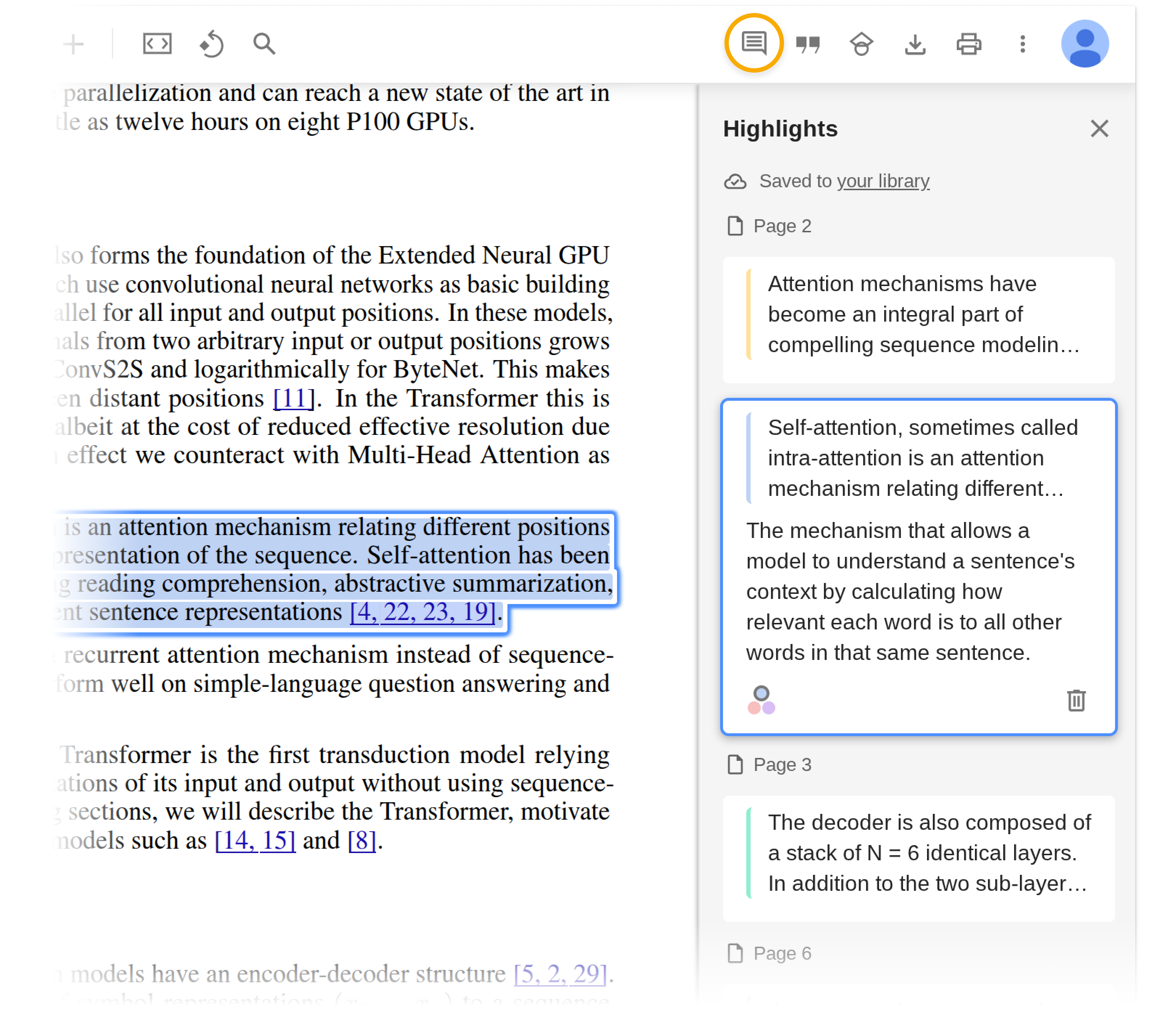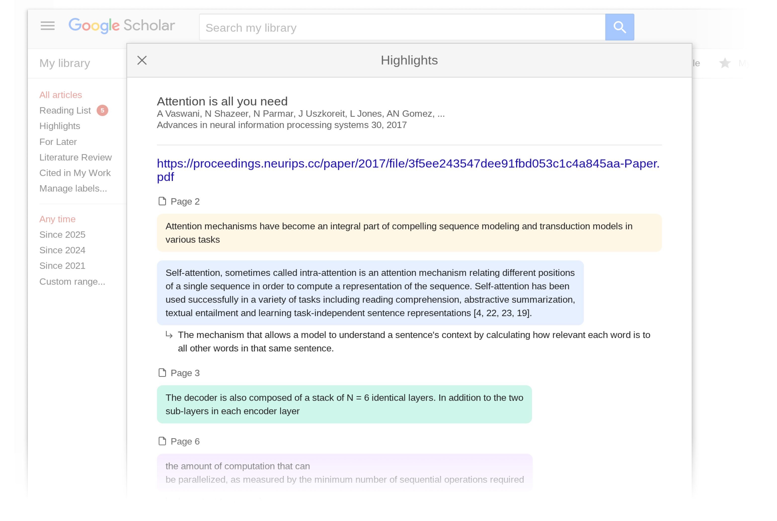 这些高亮和评论会同步到用户的 Google Scholar 账户中,方便用户随时查看和管理。这个功能其实非常有用。有 Google 做背书,用户可以放心地将重要的论文和文献进行标记和注释,方便日后查阅。